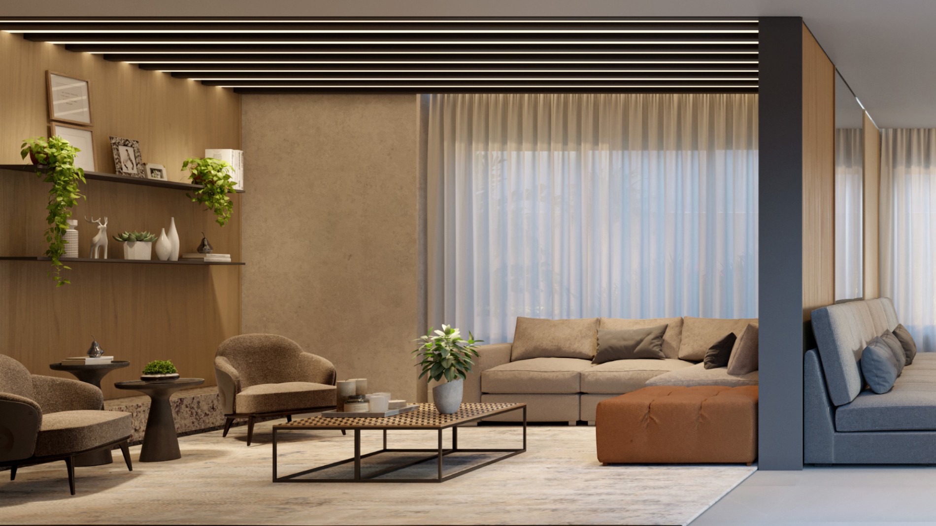 Living amplo com opção para home office